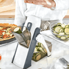 [Multifunctioneel] De messen bieden flexibiliteit om gemakkelijk fruit en groenten in vormen en maten te snijden, snijden, versnipperen en hakken. Zoals een aardappel, je kunt er gemakkelijk golvende of normale plakjes van maken, reepjes maken of pureren.