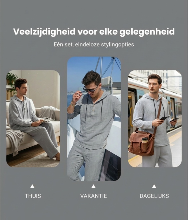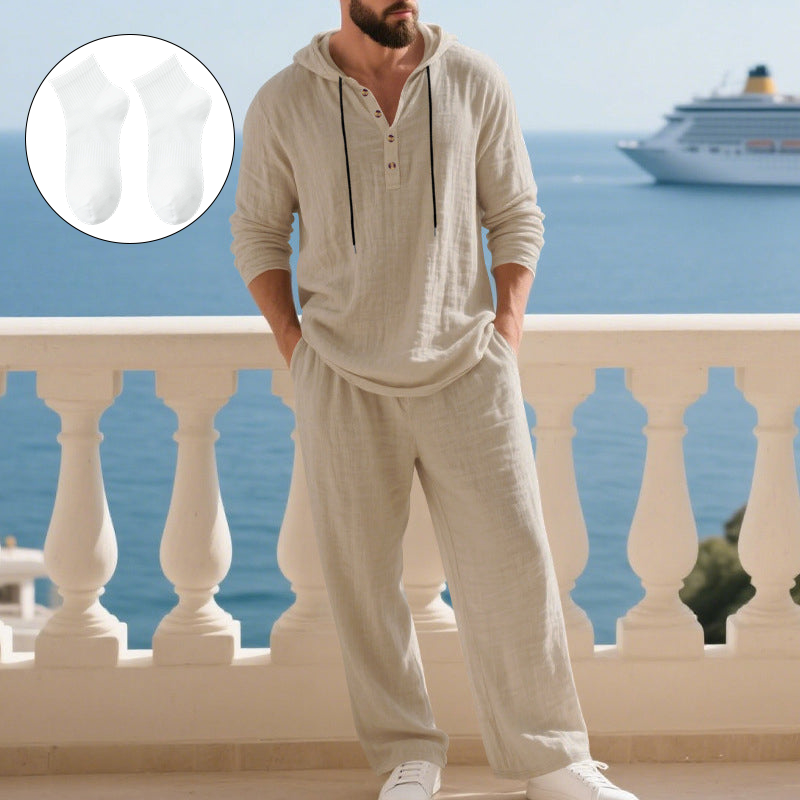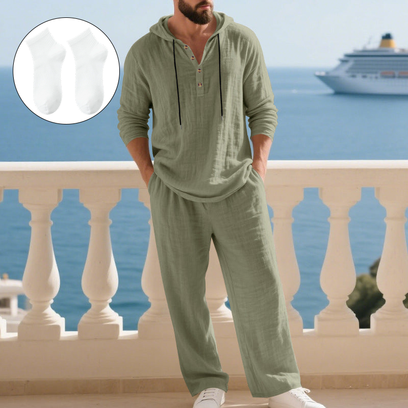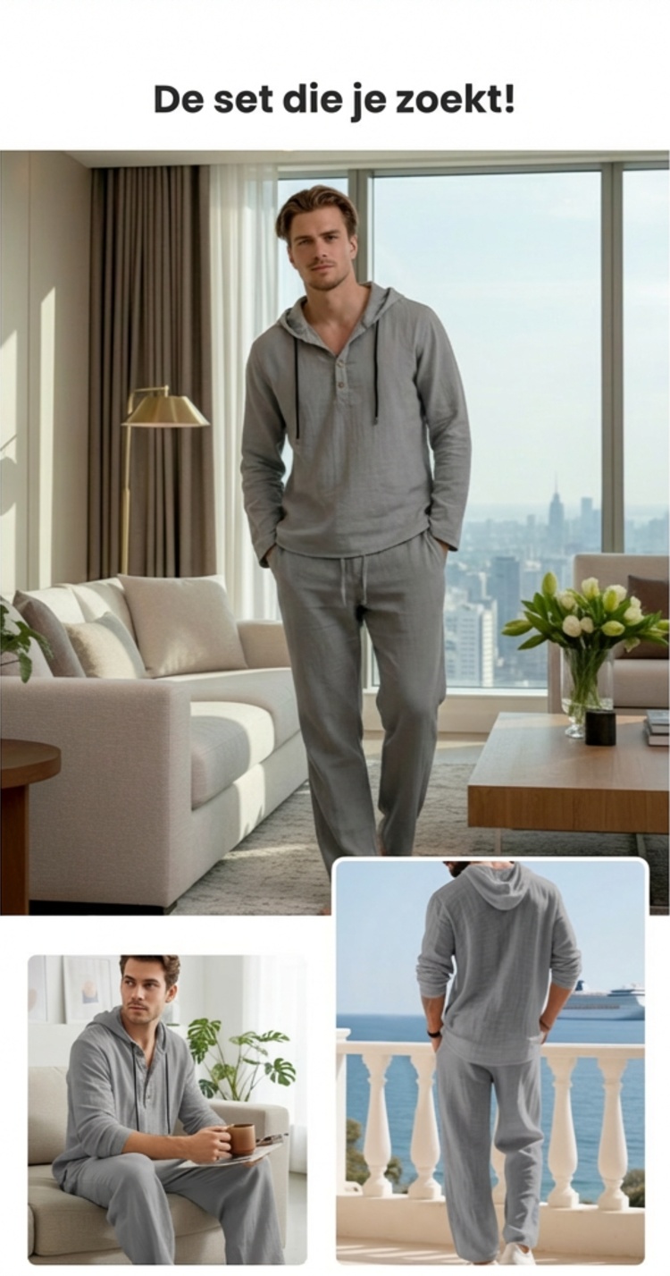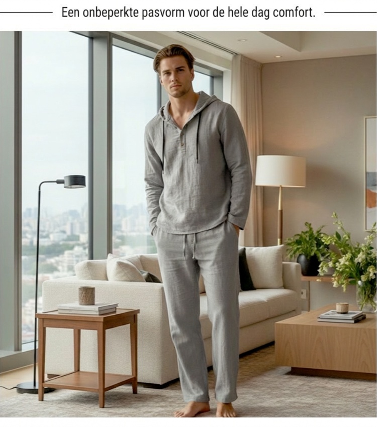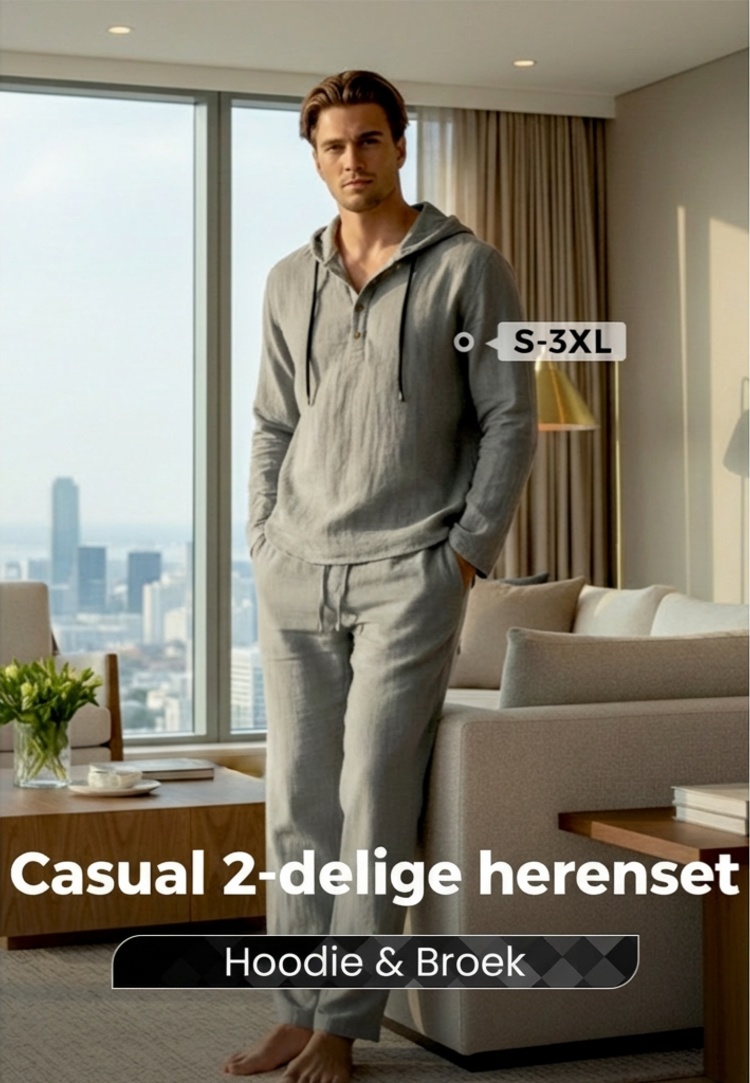 Casual losse top en broek voor heren, 2-delige set met capuchon