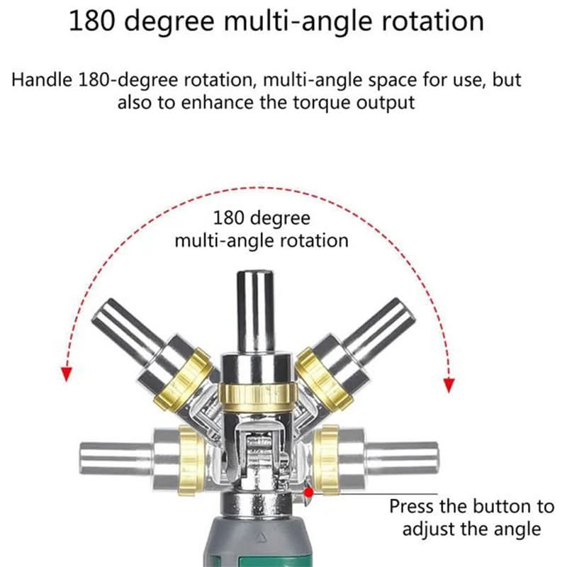 3-weg ratel voor efficiënte bediening: interne batchkop draait 180 graden, zodat je ook in moeilijk bereikbare hoeken en krappe ruimtes kunt werken. De draaibare handgreep past zich aan verschillende posities aan, waardoor je meer koppel en effectiviteit krijgt – minder moeite, betere resultaten! 🌀