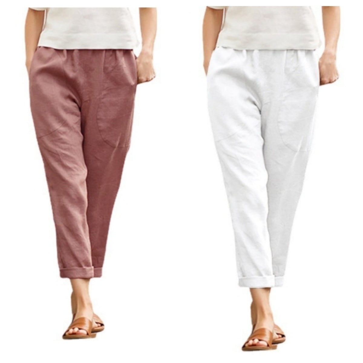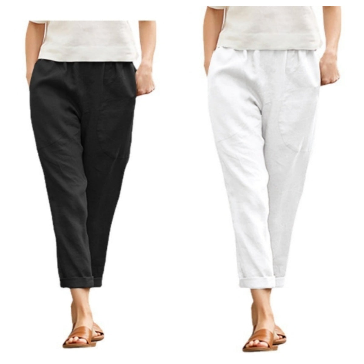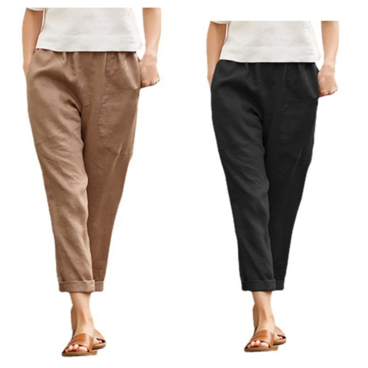 Deze losse damesbroek van linnen-katoen in grote maten is een klassieke trend en is eenvoudig en veelzijdig. Hij past perfect bij tanktops, crop tops, bloezen en zelfs casual T-shirts.